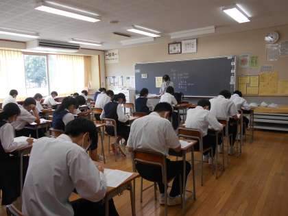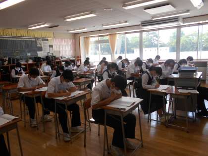 今日の確認テストは国語と理科でした。朝や休み時間にテキストや教科書で要点を確認したり、友達と問題を出し合ったりしてテストに備えていました。明日は、社会、英語、数学です。最後まで頑張りましょう。