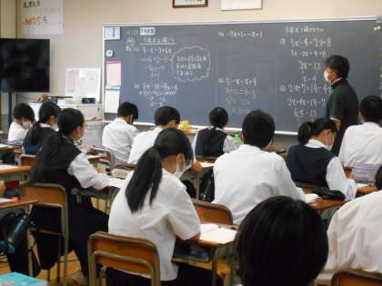 数学の授業では、方程式を解く練習をしました。つまずく人が多かった問題は、みんなで解いてみました。