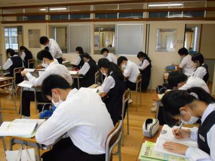 数学の授業では、平均の速さを求めることに取り組みました。みんな真剣そのものです。