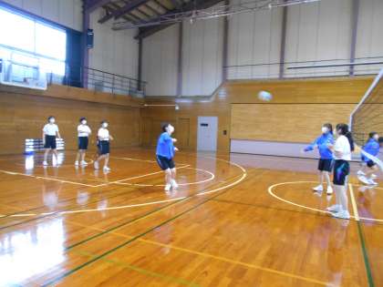 女子保健体育では、バレーボールのオーバーハンドパスとアンダーハンドパスの練習をしました。体を動かしている表情は楽しそうでした。