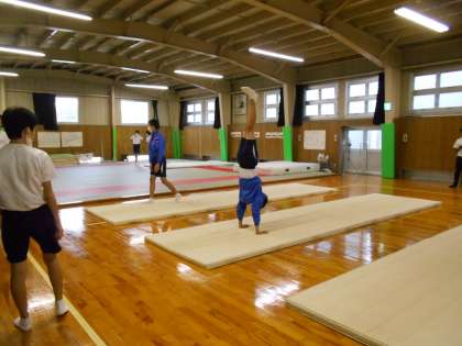 男子保健体育は、雨天のため南武館でマット運動でした。すばらしい倒立が見られました。