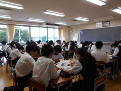 南中タイムでは、生徒会執行部が選んだ新聞記事について学び愛を行いました。ペットボトルキャップのリサイクルについて積極的に話し合っていました。