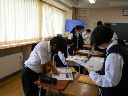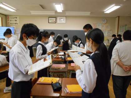 英語の授業では、本文の音読練習をペアで行いました。つまずいたところは互いに教え合いながら、スムーズに読めるように練習しました。