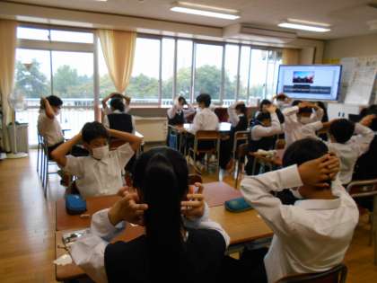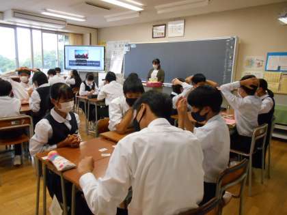 英語の授業では、既習事項を使って、グループ活動を行いました。取ったカードが正しいか、「あってるよね」と確認しながら進めていました。
