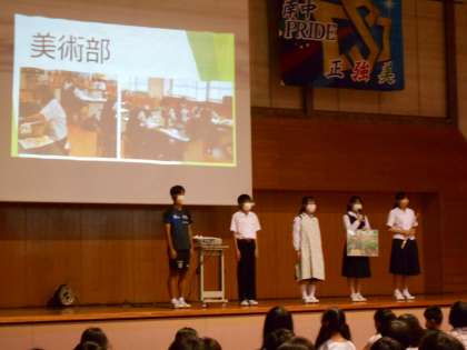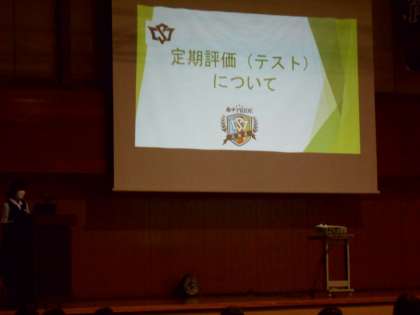 部活動紹介に続き、定期評価について説明しました。たくさんのテストがあることに、驚いた6年生もいたようです。