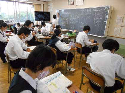 数学の授業では、これまで取り組んできた方程式の解法を確認する授業でした。中間評価前に、つまずきを解消できたでしょうか。