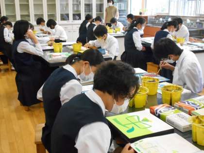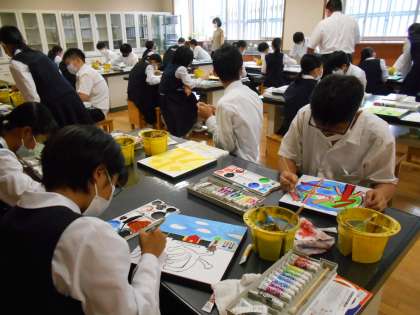 美術の授業では、パネル制作が進んでいます。完成した作品は、保護者懇談会で見ていただく予定です。