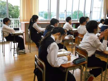 家庭科の授業では、必要な衣類を手に入れるまでの流れを考えました。服を選ぶときも、ポイントがあるようです。