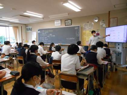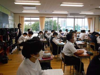 英語の授業では、リスニングの練習で出てきた単語の発問練習をしていました。英語は声に出して練習することが大切です。