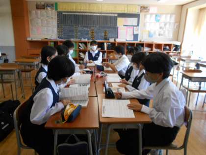 練習終了後、リーダーが集まって反省会をしているクラスもあり、楽譜を見ながら、どこをもっと練習するとよいか、意見を出し合っていました。明日の練習につながり、きっとよりよい歌になるでしょう。頑張ってください。