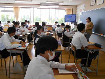 社会の授業では、南アジアの国、インドの産業や特徴について、知っていることを出し合いました。