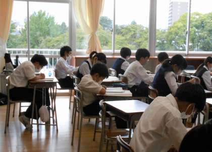 理科の授業では、テストの振り返りをしました。つまずいた人が多かった問題をみんなで復習しました。