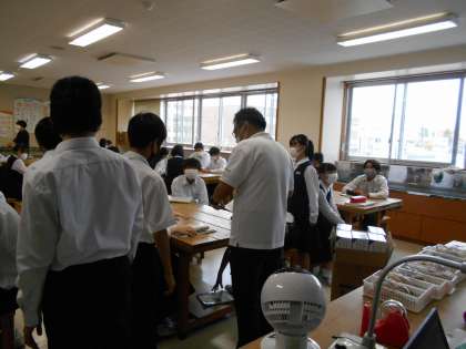 技術の授業では、ダイナモラジオ制作に取り組んでいます。今日は部品を基板に付けました。