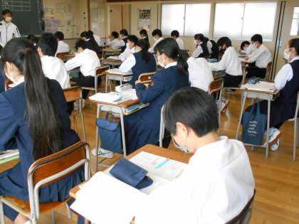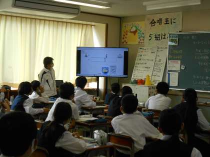他のクラスの数学の授業でも、方程式を使って、分からない距離や速さ、かかる時間を求めることに取り組んでいました。みんな興味をもって問題に臨んでいました。