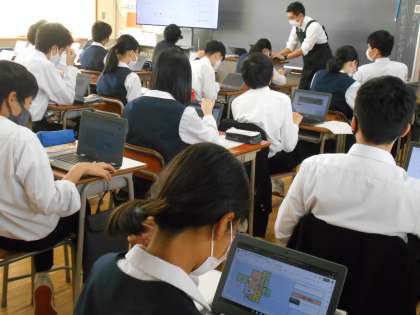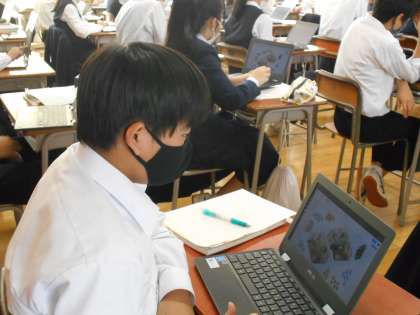 家庭科の授業では、Chromebookを使っての授業でした。それぞれが答えた意見がみんなで共有できます。