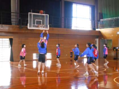 女子保健体育の授業もバスケットボールでした。ボールをつなぎシュートできるように、みんな声を掛け合って頑張りました。