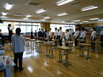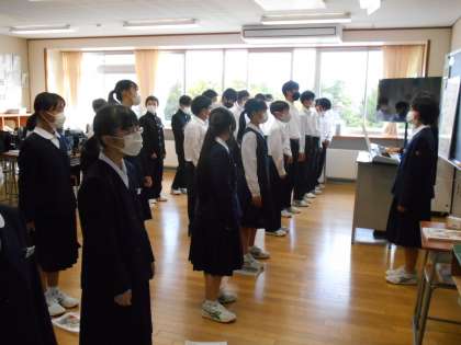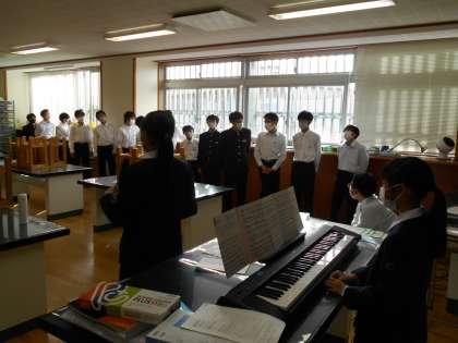 明日の合唱コンクールリハーサルに向けて、どのクラスもしっかり練習が進められていました。指揮者の指示で体の向きを変えることもできており、1年生はとてもチームワークがしっかりしています。