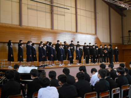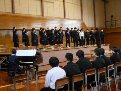 各クラスの実行委員から、それぞれのクラスの思いが語られ、いよいよ合唱です。指揮者をしっかり見つめて歌う姿に、緊張感も感じられました。