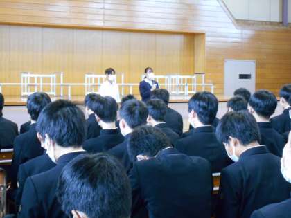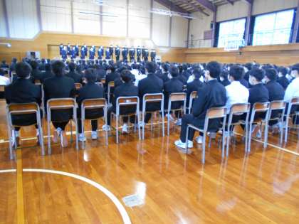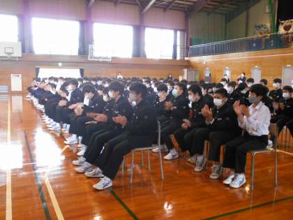 難しい曲ながら、歌詞に思いをこめて歌う3年生の姿に、学ぶことがたくさんあったようです。最後に、2年生の代表から、3年生の先輩に、素敵な合唱を聴かせてもらったお礼と共に、