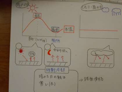 理科の授業では、1日の中で気温、湿度はどのように変わるのか勉強しました。