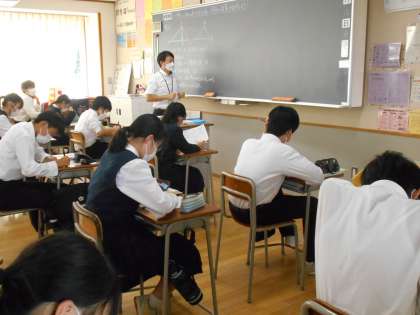 数学の授業では、三角形の相似条件を利用して、図形の性質を証明することに取り組みました。