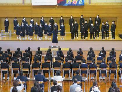 トップバッターでしたが、堂々と歌いあげて、学年をひっぱってくれました。パートの音程をしっかりとり、バランスを意識して歌をつくりあげていました。盛り上がりの力強さが特に素晴らしかったです。