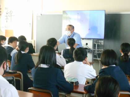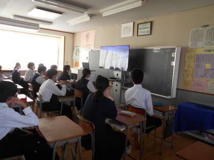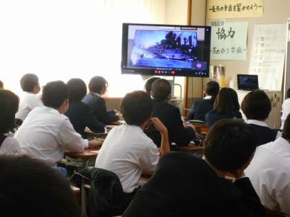 画面に映し出される映像を真剣な表情で見ながら、太平洋戦争の背景について学びました。食い入るように映像を見ている生徒もいました。