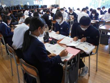 2学年は、今日のNTも平和学習に関する学び愛を行いました。太平洋戦争の背景について、昨日のDVDの内容を思い出したり、教科書やクロームブックを使って調べたりしながら、「○○年にあったのは、○○だよね。」などと確認し合っていました。