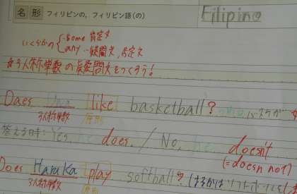 英語の授業では、私、あなた以外で一人の人が主語になったとき、動詞が変化することに気を付けながら、疑問文を作る練習をしました。