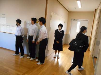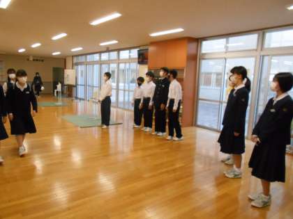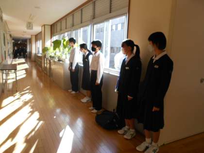 今日は1年3組が担当しました。背筋をぴんと伸ばし、あいさつをする姿が光りました。