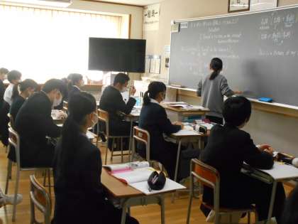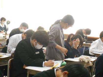 英語の授業では、後ろから情報を加える後置修飾の形を勉強しています。いろいろな例を出しながら練習しました。