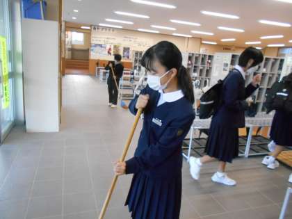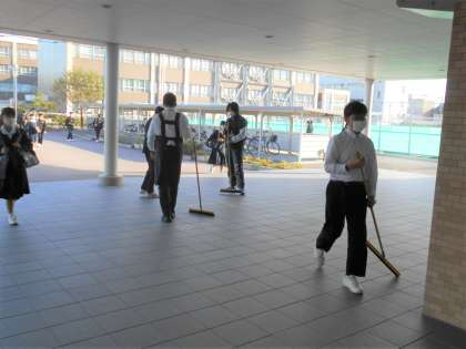 生徒玄関では、環境委員を中心に清掃ボランティア活動が行われました。生徒のみなさんが積極的に活動してくれる姿は、学校を元気にしてくれます。ご苦労様でした。