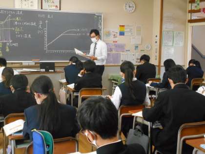 理科の授業では、状態変化が起きるときの温度について勉強しており、学習したことを丁寧にノートにまとめていました。