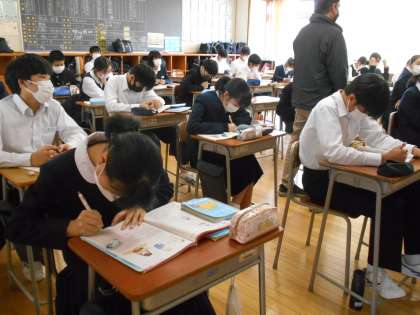 英語の授業では、ALTの先生にもアドバイスをもらいながら、本文に関する問題に取り組みました。