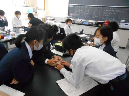 理科の授業では、ロウの状態変化と体積や質量の変化から、何が起きているのか証明することに取り組んでいます。