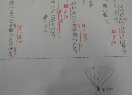 国語の授業では、「扇の的」を読んで、人物の思いや生き方を考えました。