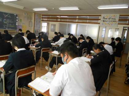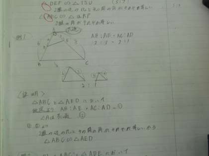 数学の授業では、丁寧に過程をノートに書きながら、三角形の相似の証明に取り組みました。