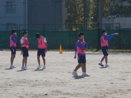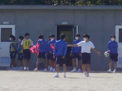 男子保健体育の授業はサッカーでした。チームに分かれて対戦練習をしました。