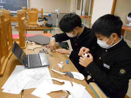 来月行われるロボットコンテストに向けて、3年生が挑戦しています。正確に飛ばすにはいかにすべきか。悩みながらも頑張っています。