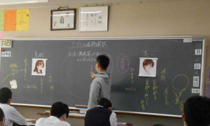 3組の道徳の授業では、「アイツの進路選択」という教材を使って、担任の先生以外とのローテーション道徳を行いました。これから進路を考えていくに当たり、自分の考えを深めることができました。