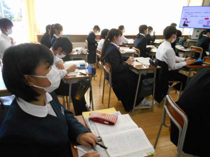 国語の授業では、「扇の的」を読んで、一文一文丁寧に解釈をしていきました。