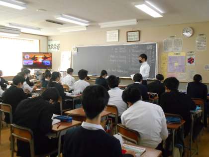 英語は、映画の中に出てくる表現等、具体的な場面を考えながらの授業でした。