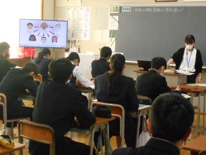 英語の授業では、対話文を読み、内容理解に取り組みました。主語、述語を押さえることができれば、後は情報が少しずつ加えられていくだけです。かたまりを意識して読んでいきましょう。