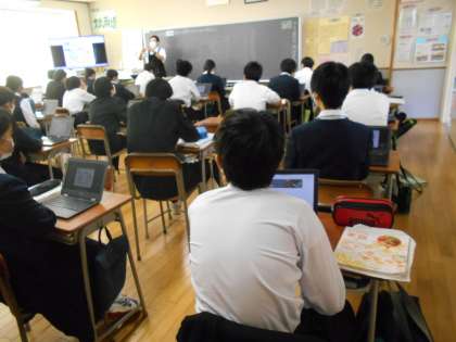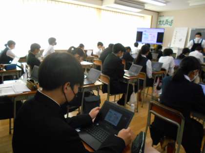 家庭科の授業では、住まいに潜む危険について、イラスト等をChromebookで見ながら考えました。いろいろな危険があることが改めて分かりました。