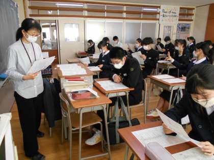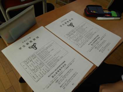 学活では今週の進路説明会に向けて、自分たちで資料を組みました。資料に目を通している様子からは、真剣さや緊張感が伝わってきました。説明会ではしっかりと話を聞き、自分の進路選択について考えてほしいと思います。