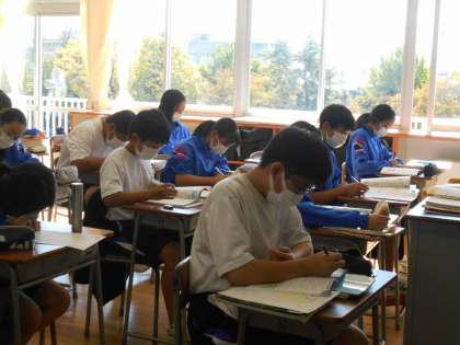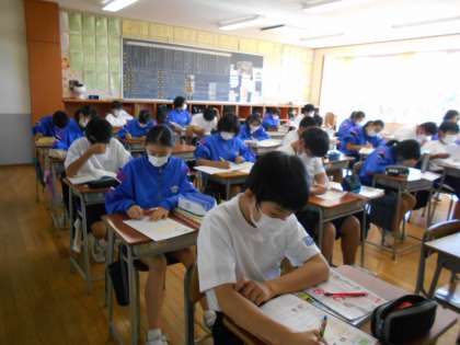 英語の授業では、ワークシート等を使って、これまでの復習をしました。理解ができていなかったところは、どんどん質問して解決しておきましょう。