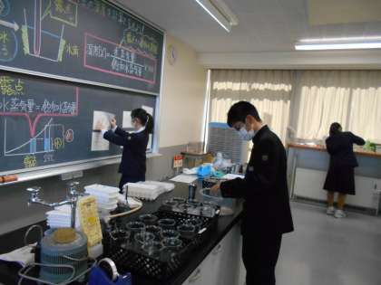 理科は、実験で露点と気温を求め、理科室の湿度を算出する授業でした。不思議ですが、同じ理科室にいても湿度が若干違う値になりました
