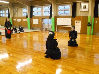 剣道部は、試合をしていました。審判の練習にもなります。春の大会に向けて、しっかり練習を積み重ねましょう。