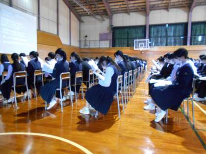 生徒のみなさんは、メモをとりながら真剣に話しを聞いていました。今後の進路選択に役立ててほしいと思います。