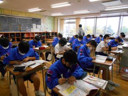 保健体育は、男子は保健分野、女子はバスケットボールに取り組みました。女子は、ゴールシュートの実技テストもありました。